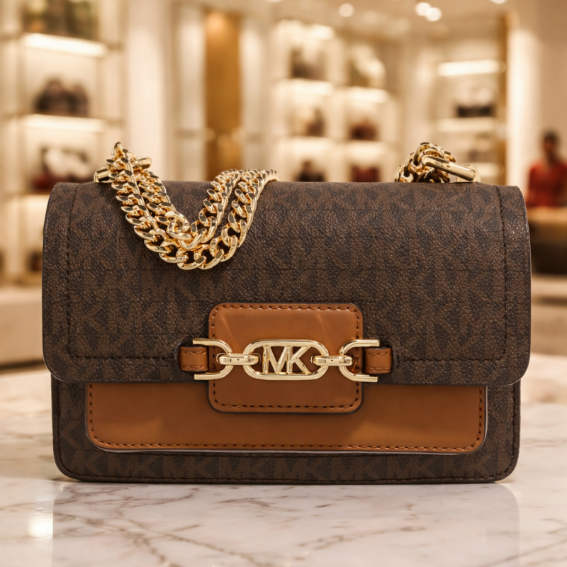 Michael_Kors MK Heather Logo Shoulder Bag With Box & Dust Bag