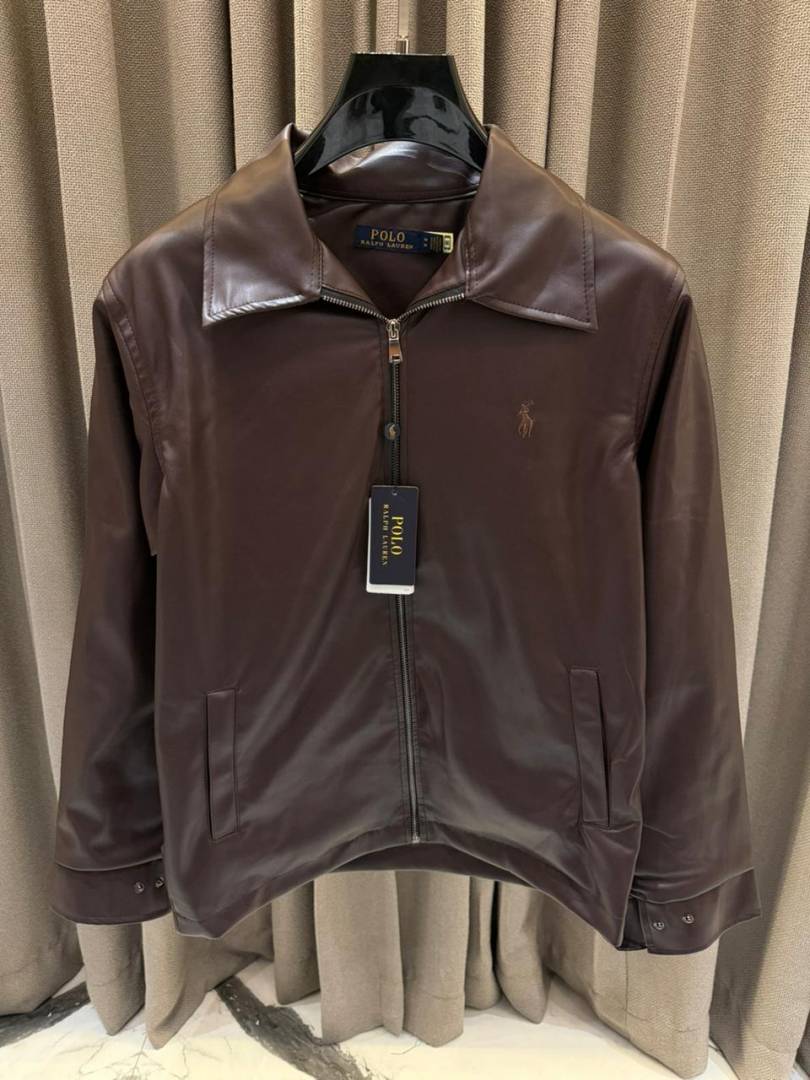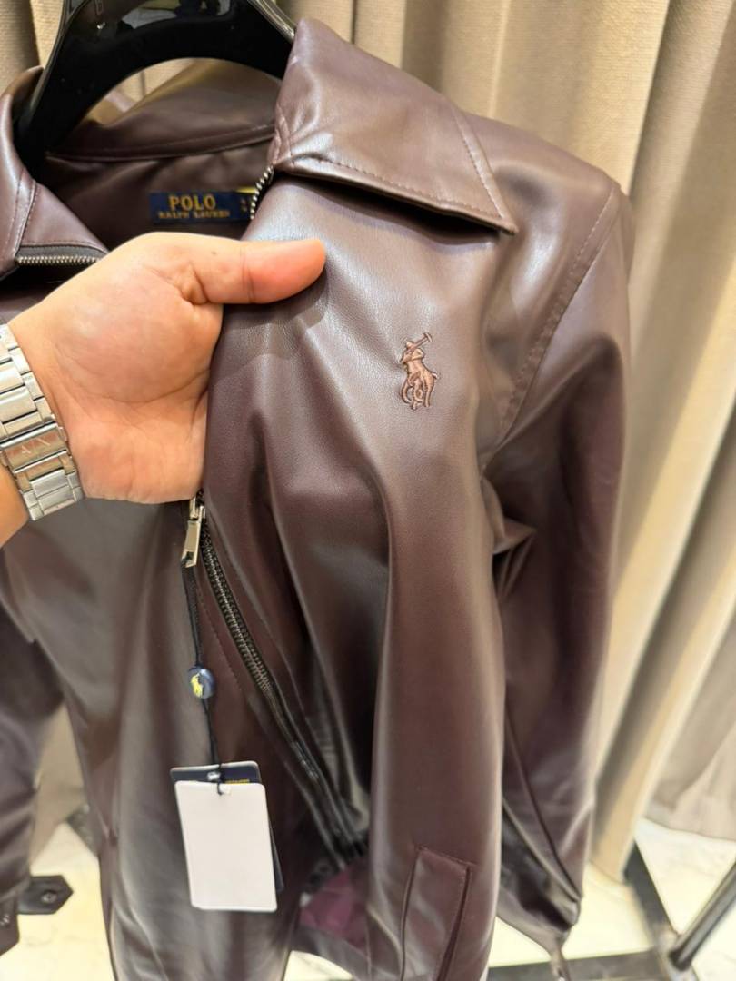 • Ralph_Lauren Chest Logo Leather Jacket Maroon
