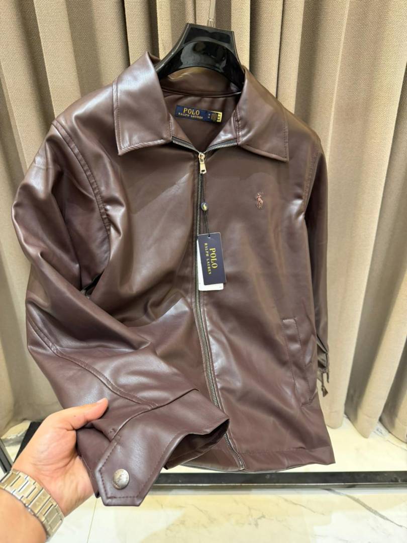 • Ralph_Lauren Chest Logo Leather Jacket Camel Brown
